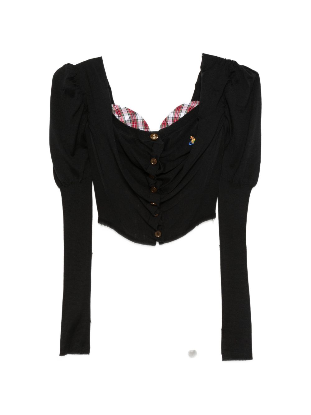 black button fastening long sleeves ruched detail orb logo square neck