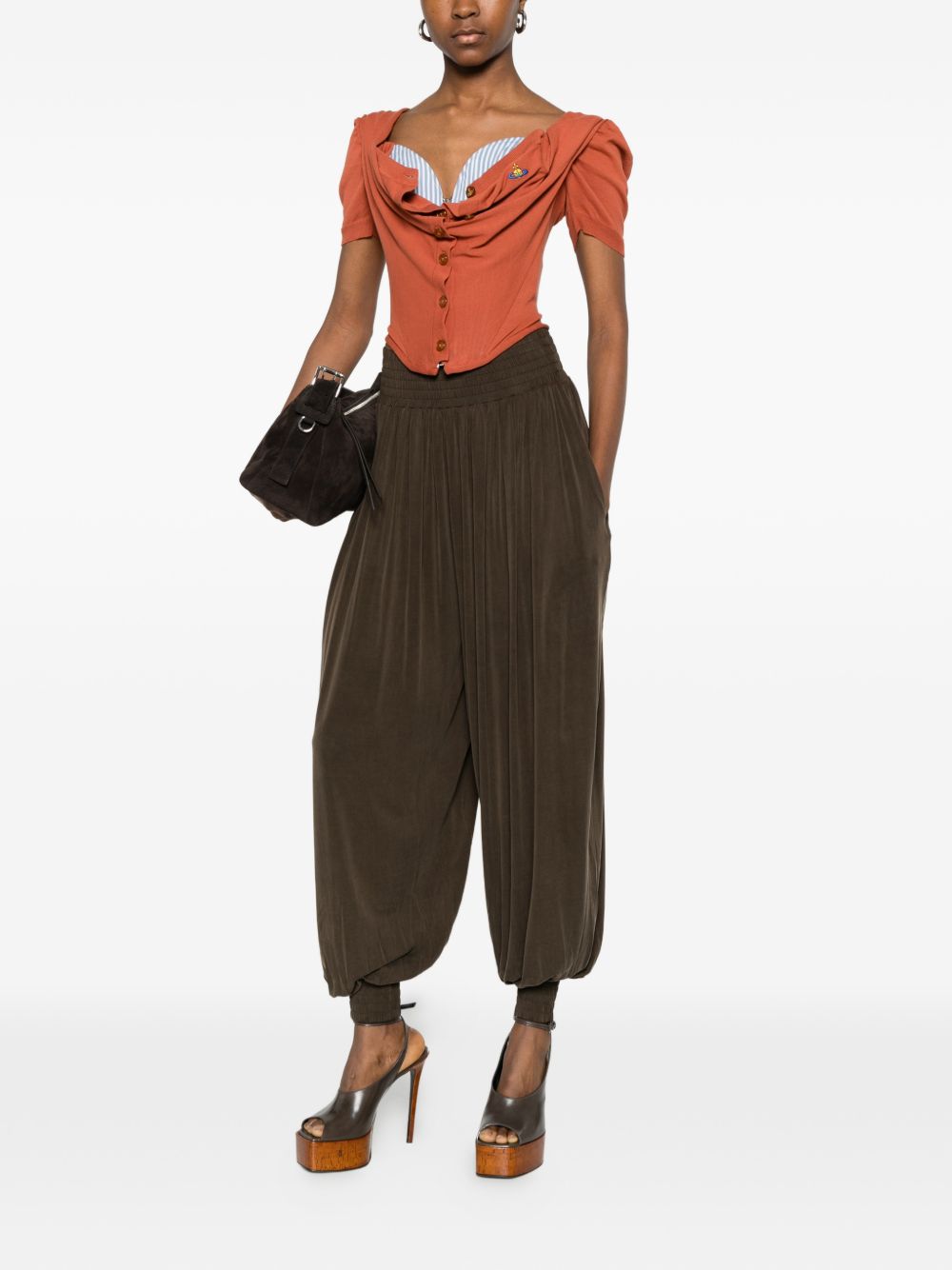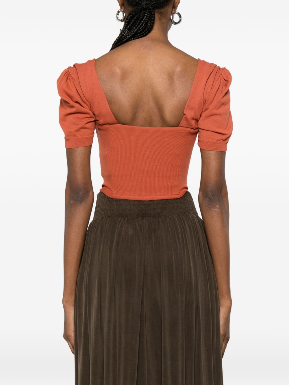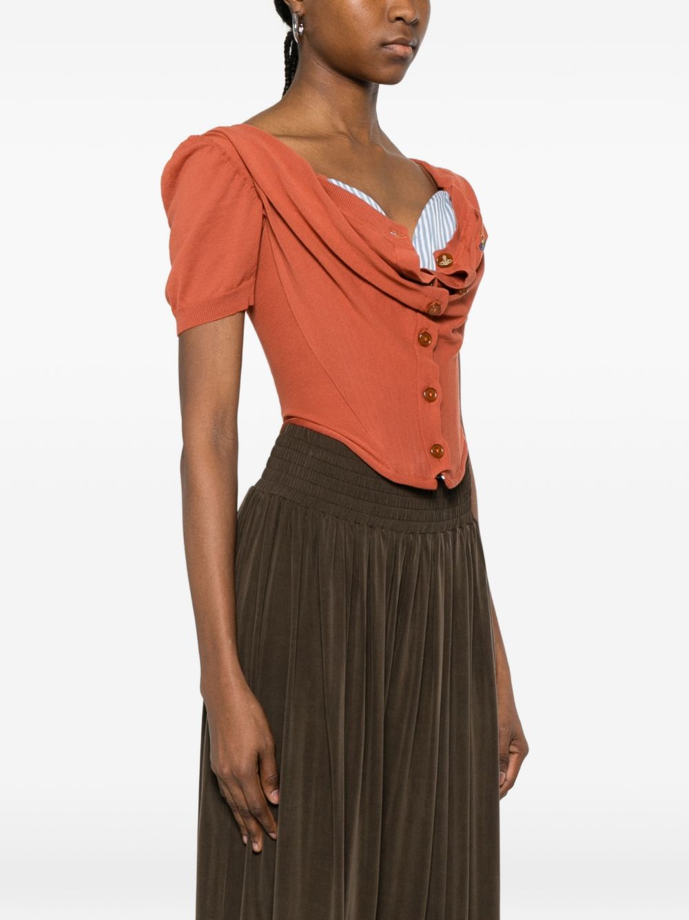 orange button fastening orb detail short sleeves draped detail off shoulder