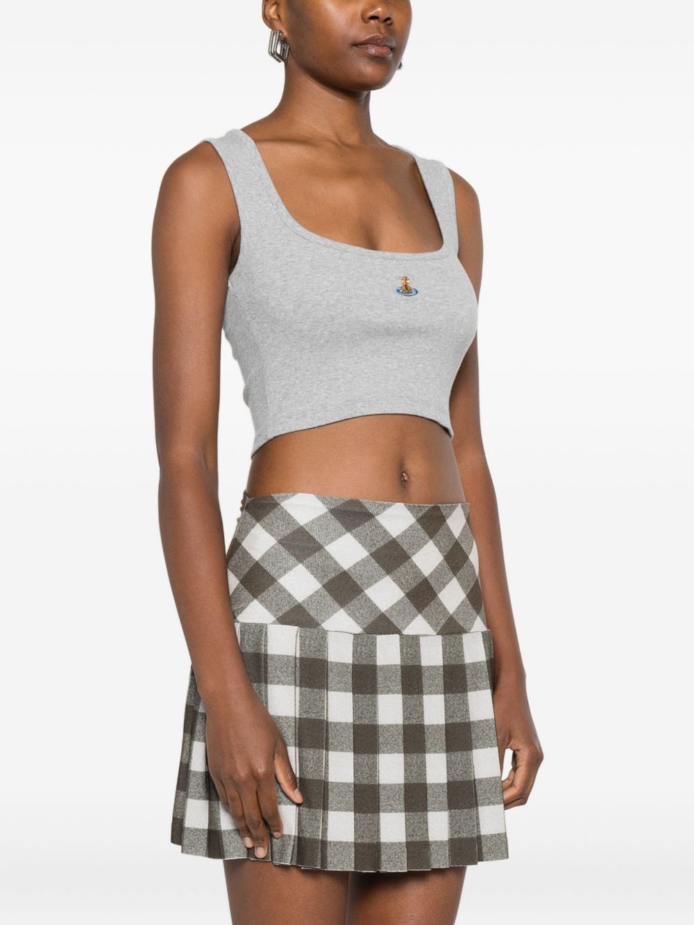 grey scoop neck sleeveless ribbed fabric Orb embroidery cotton-blend