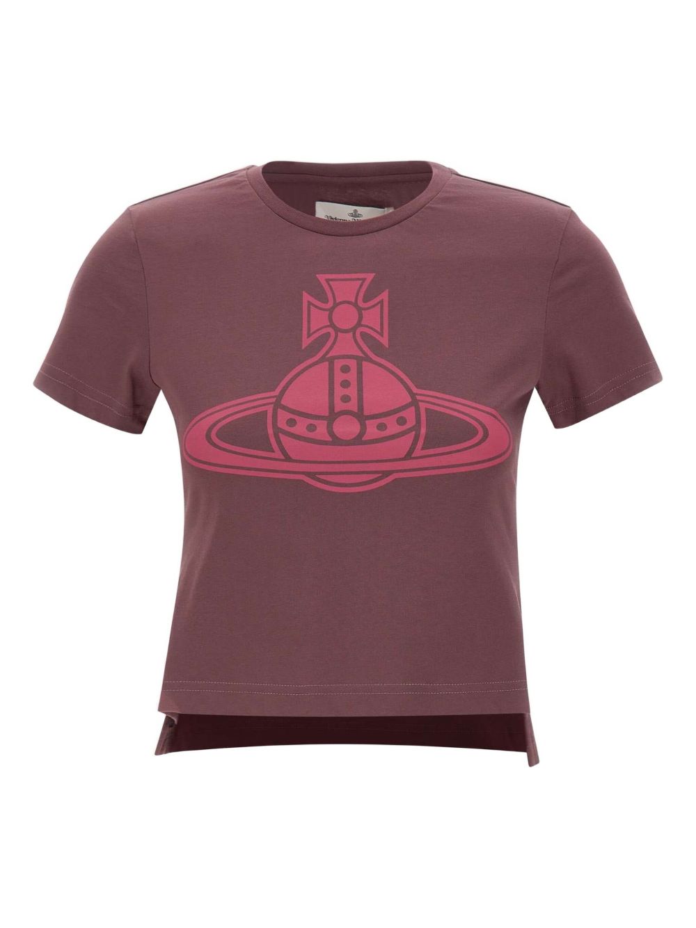 bordeaux red signature Orb logo print crew neck short sleeves side slits