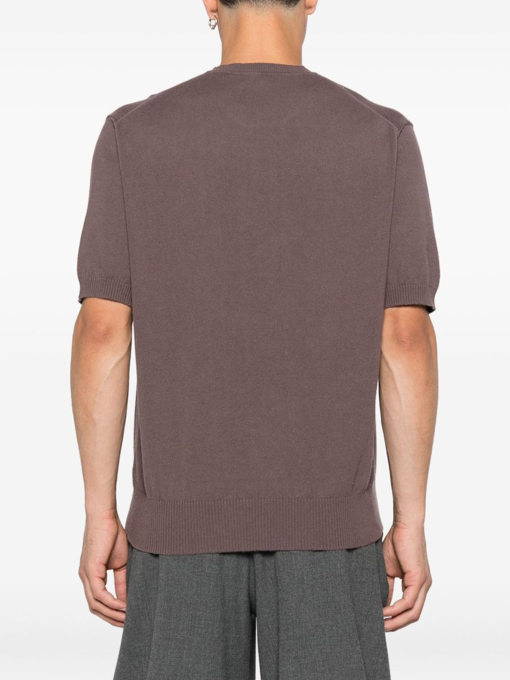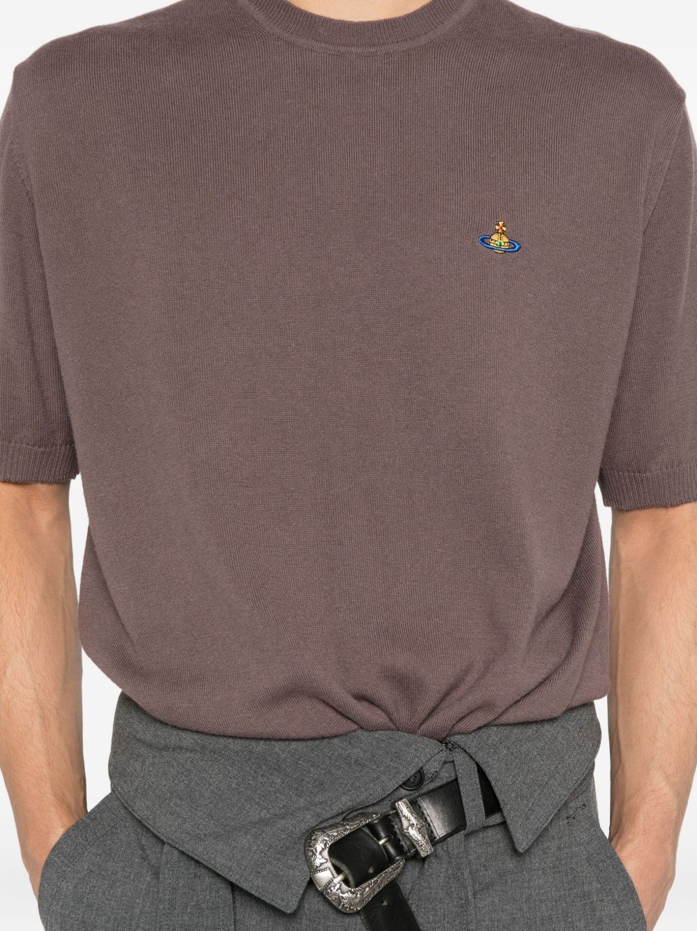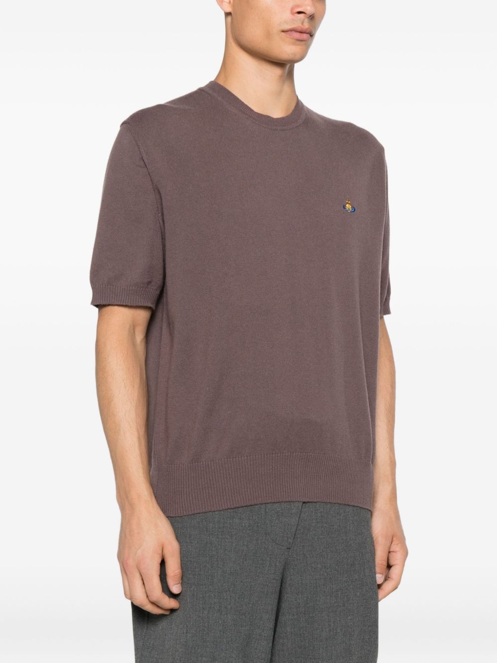 brown short sleeves crew neck logo embroidery