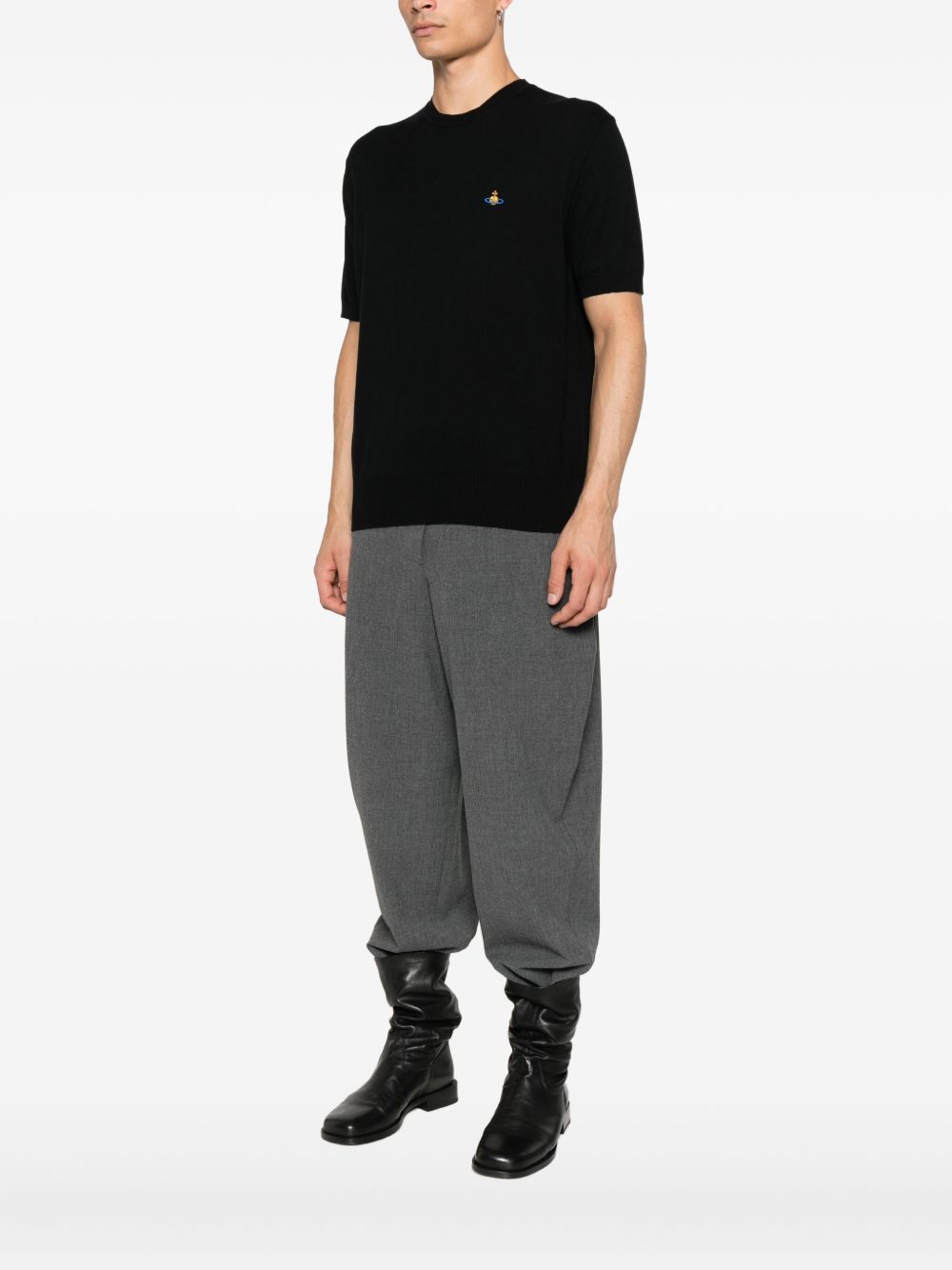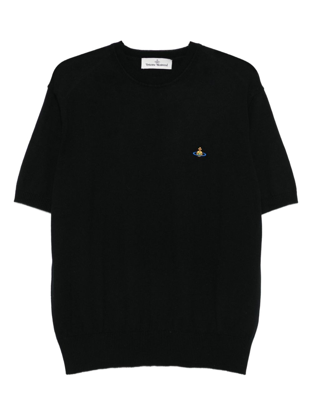 black short sleeves crew neck organic cotton-cashmere blend ribbed hem