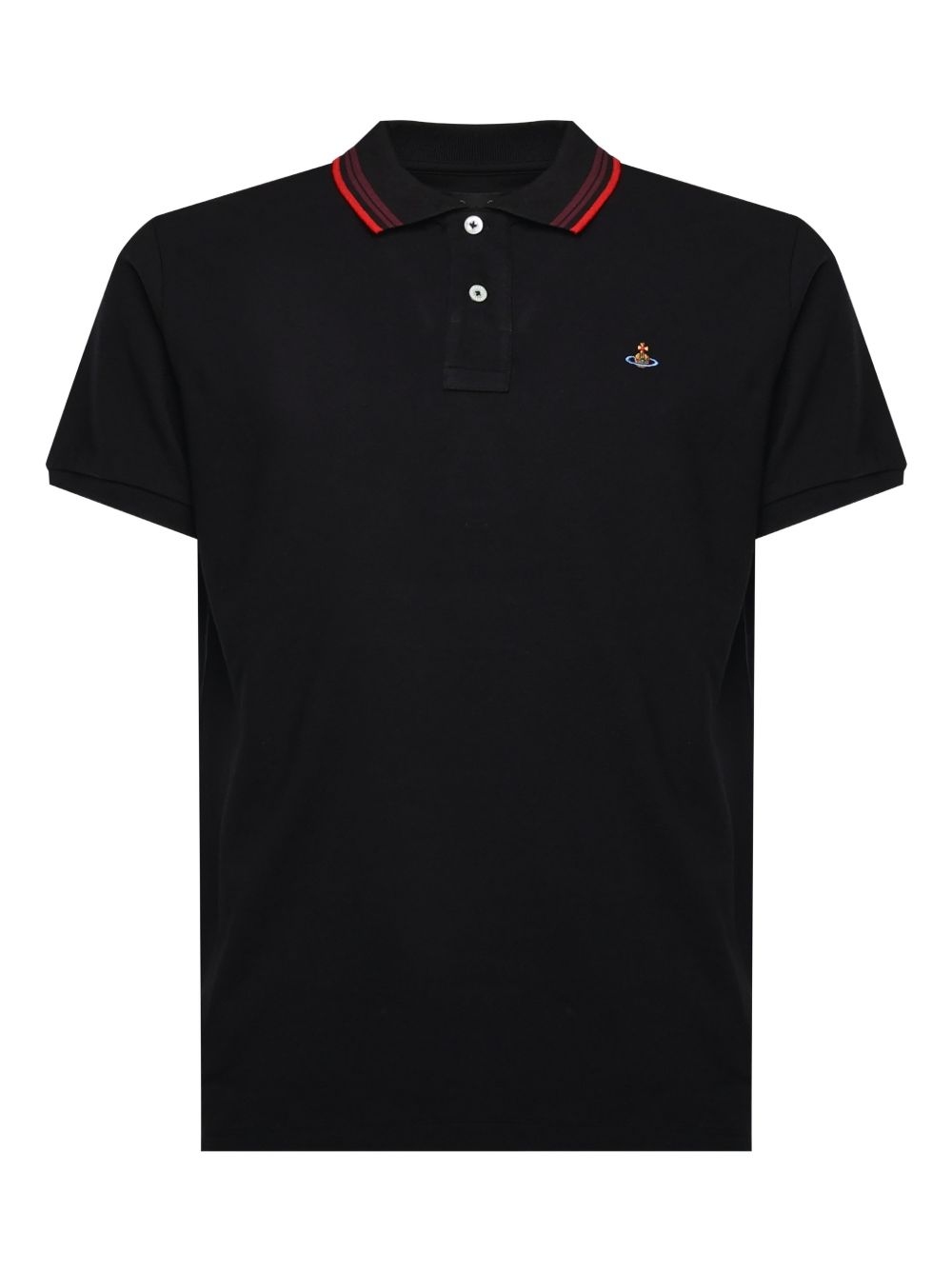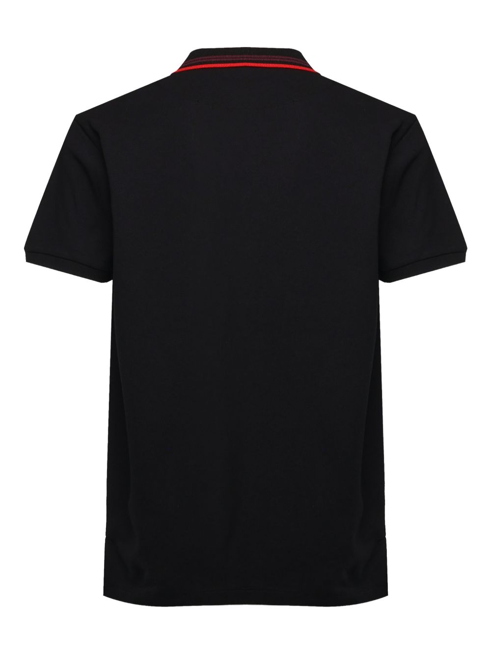 black cotton striped collar short sleeves front button fastening logo embroidery