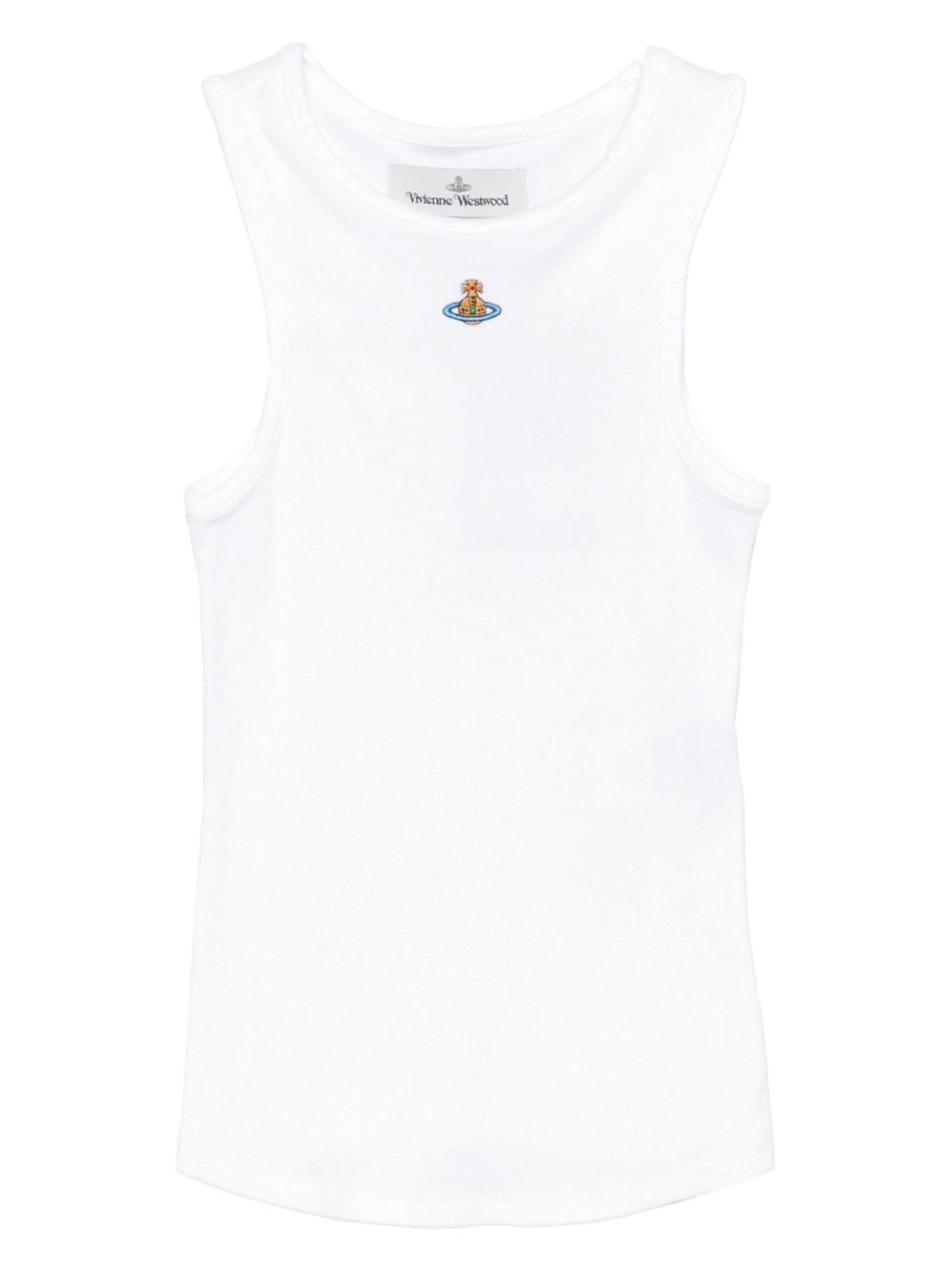 white cotton blend ribbed texture sleeveless round neck Orb emblem