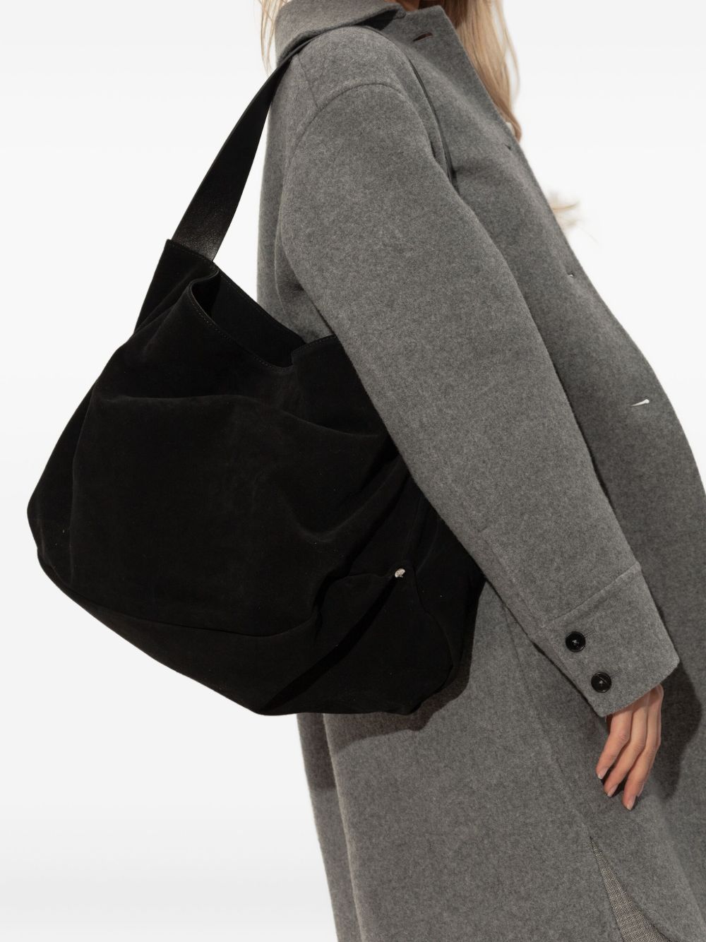 black suede internal zip pocket