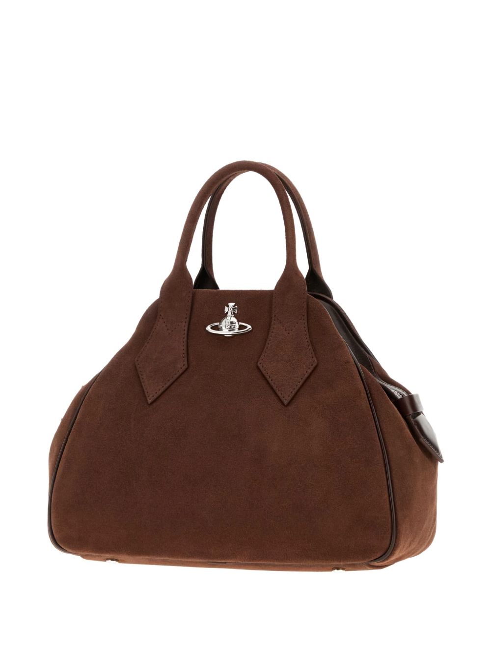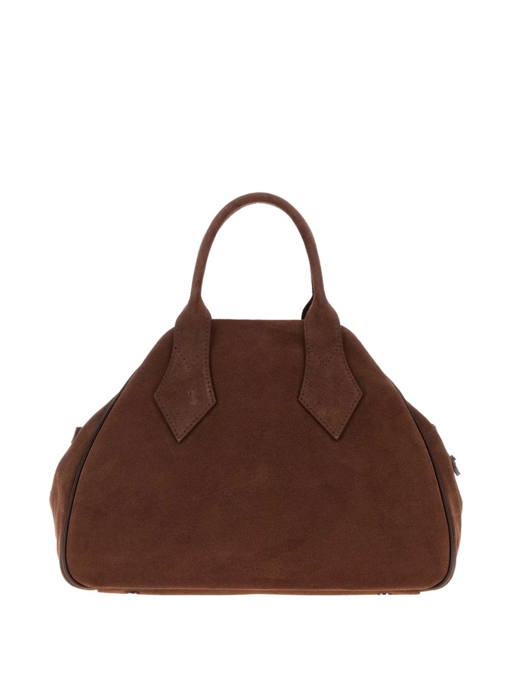 brown top handle Orb appliqué top zip fastening piped trims tonal stitching