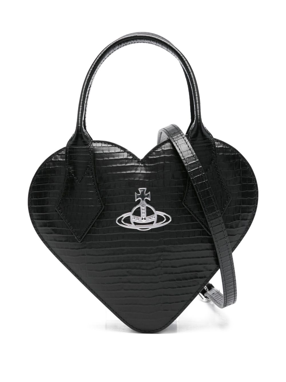 black crocodile-embossed leather heart shape top handle orb emblem zip fastening