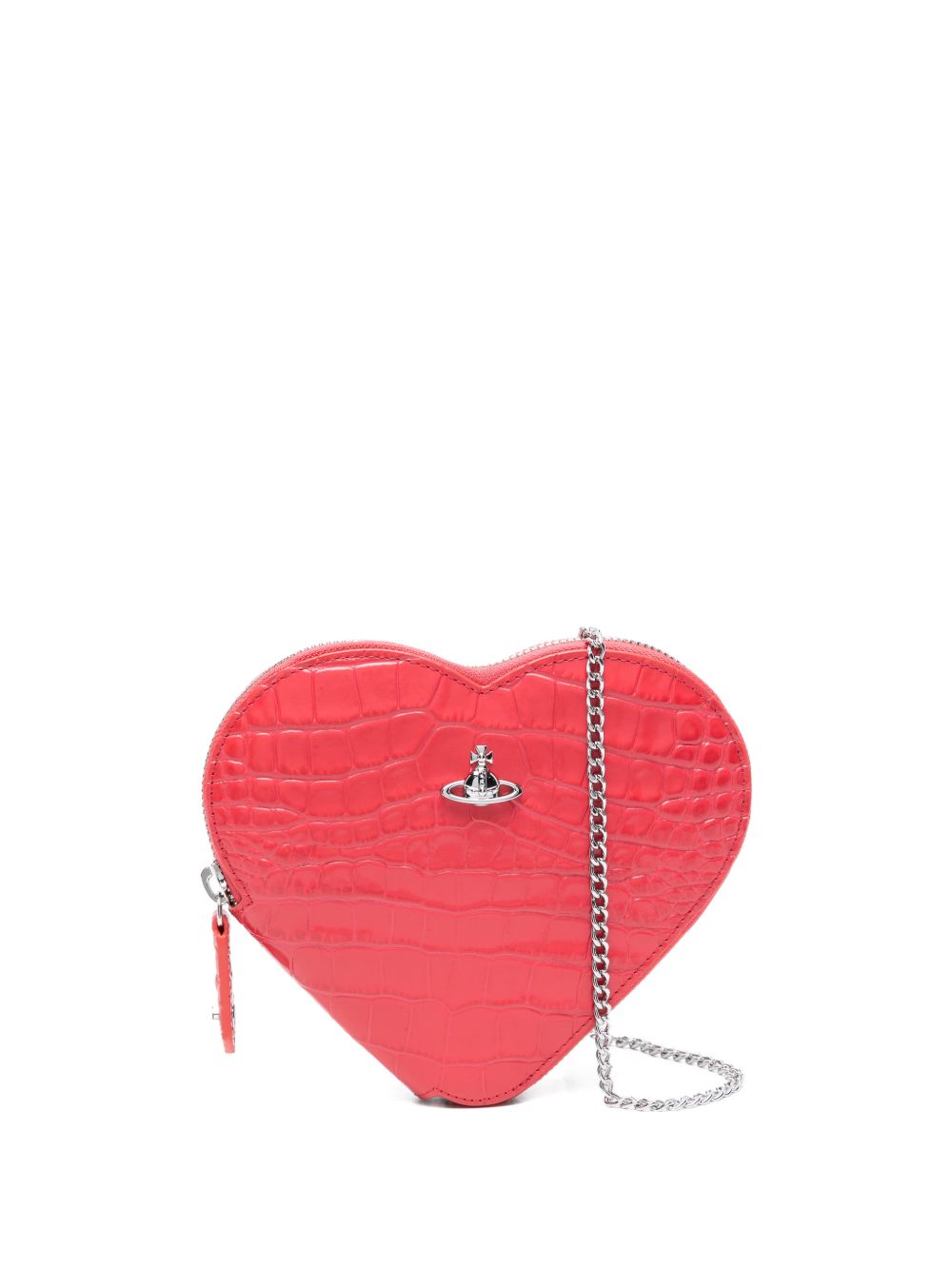 coral croc-effect orb logo chain-link shoulder strap zip fastening heart shape This piece comes complete with a protective dust bag.