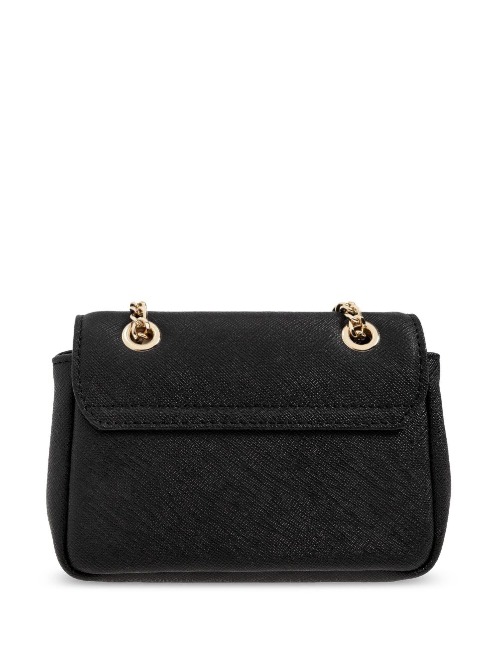 black calf leather signature Orb plaque detail chain-link shoulder strap foldover top with magnetic fastening main compartment internal logo patch gold-tone hardware canvas lining