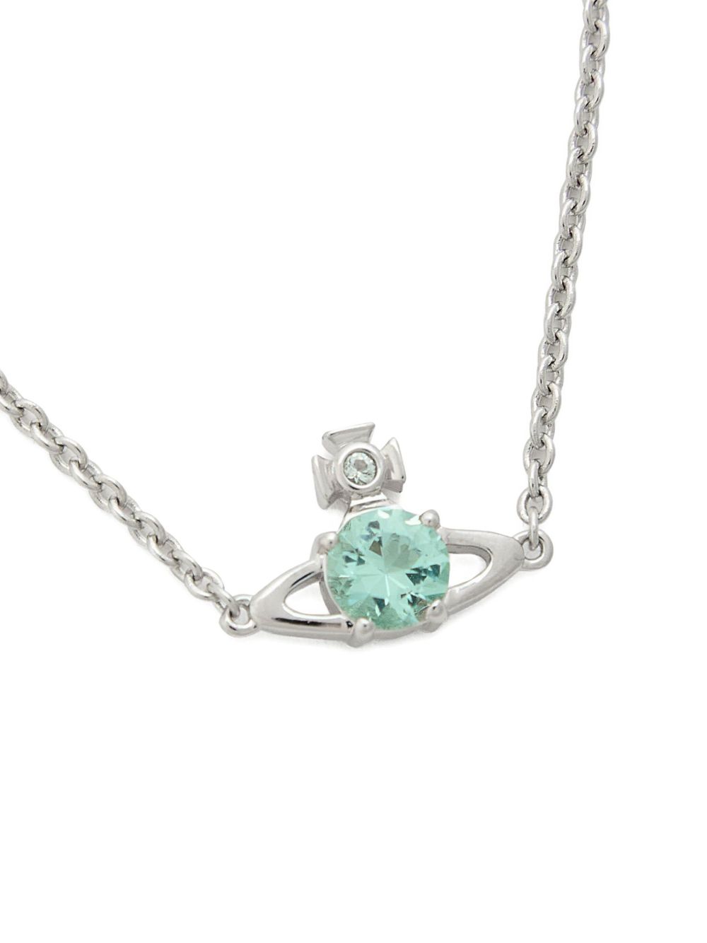 silver-toone Orb pendant small stone embellishment lobster clasp fastening adjustable fit