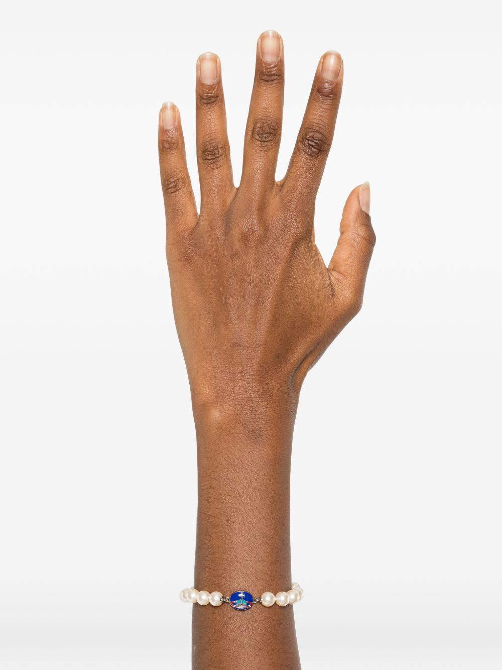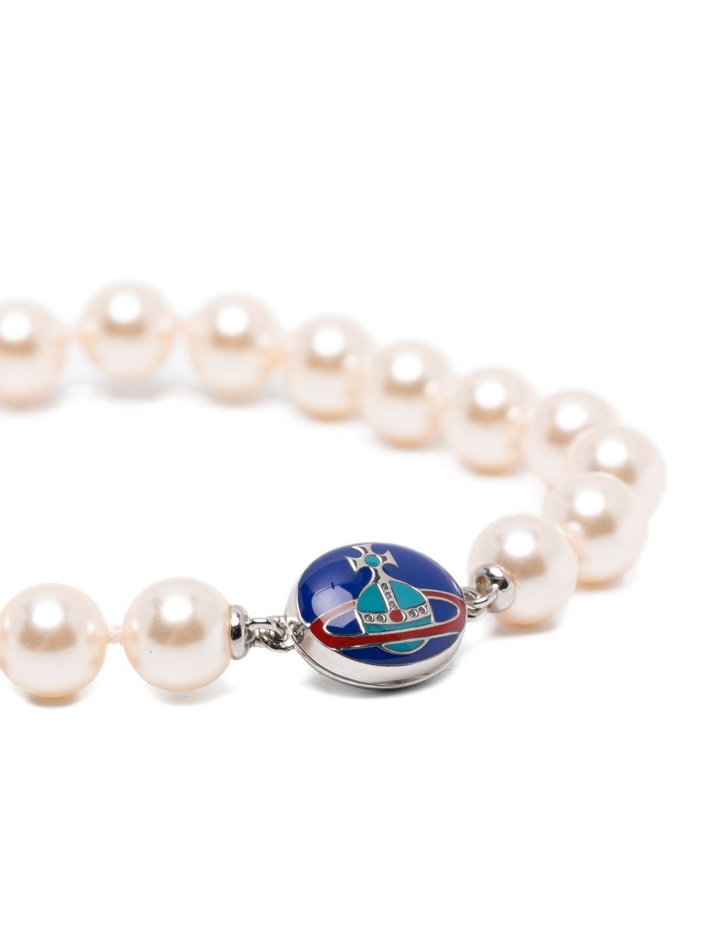 cream orb detail faux pearl accents silver-tone hardware beaded design This piece comes complete with a protective dust bag.