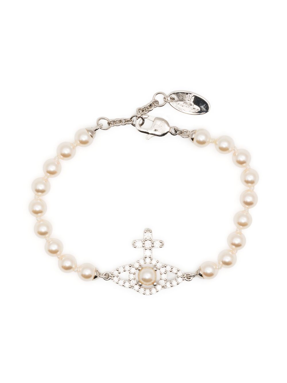 white/silver-tone faux-pearl detailing signature Orb plaque detail lobster claw fastening polished finish