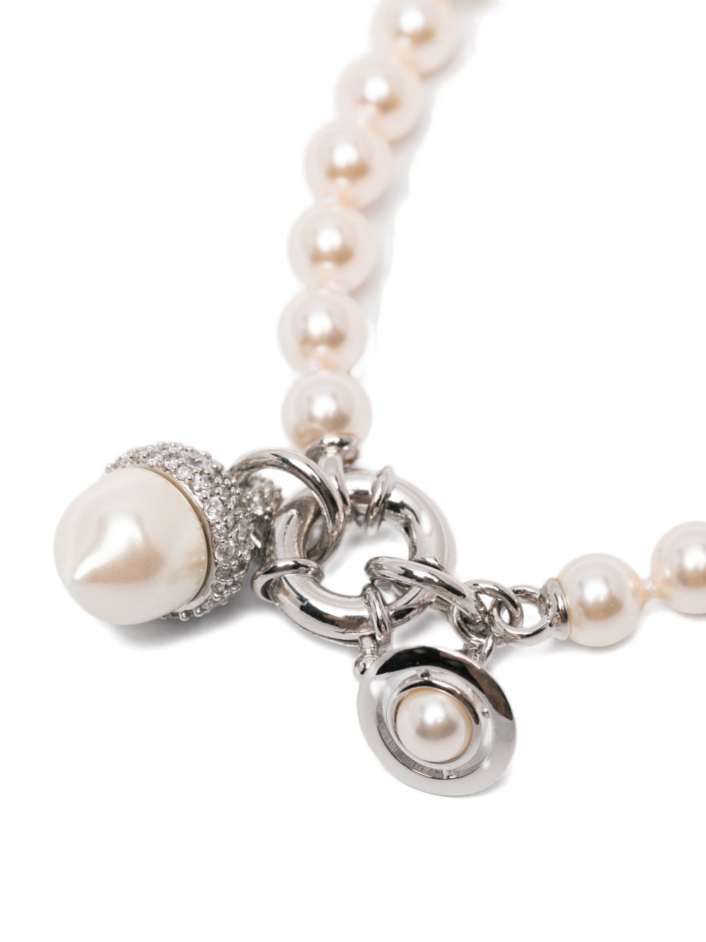 silver-tone/white polished finish faux-pearl embellishment crystal embellishment Orb charm spring-ring fastening polished finish