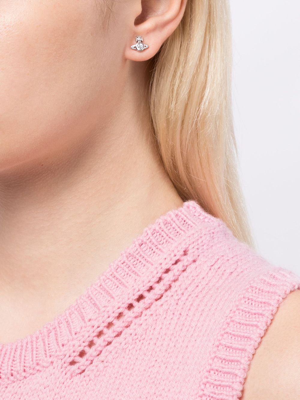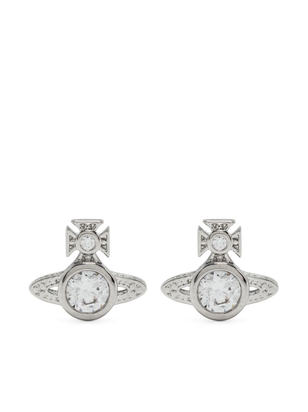 silver-tone brass signature Orb plaque detail crystal embellishment for pierced ears